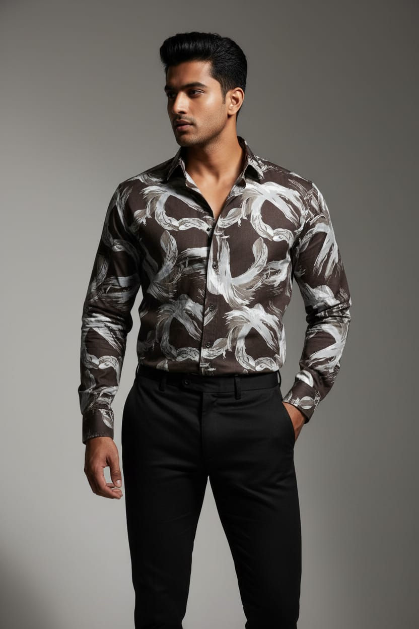 MEN BROWN PRINTED SHIRT