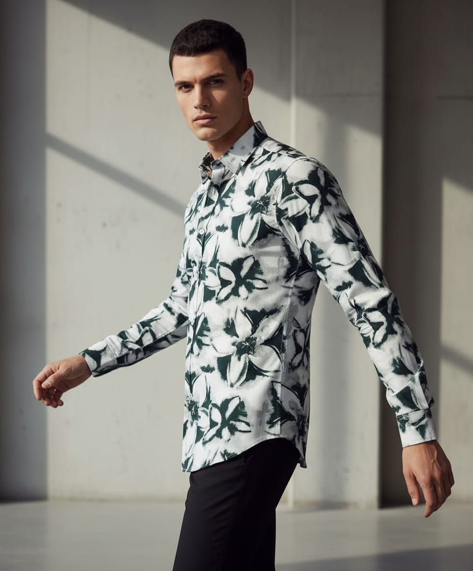 MEN WHITE FLORAL PRINTED SHIRT